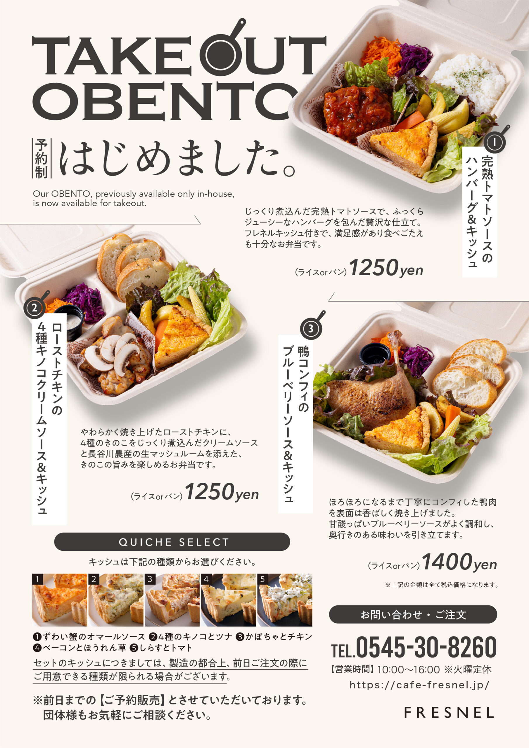 FRESNELでは下記のテイクアウト商品を販売しております!ぜひご利用ください。