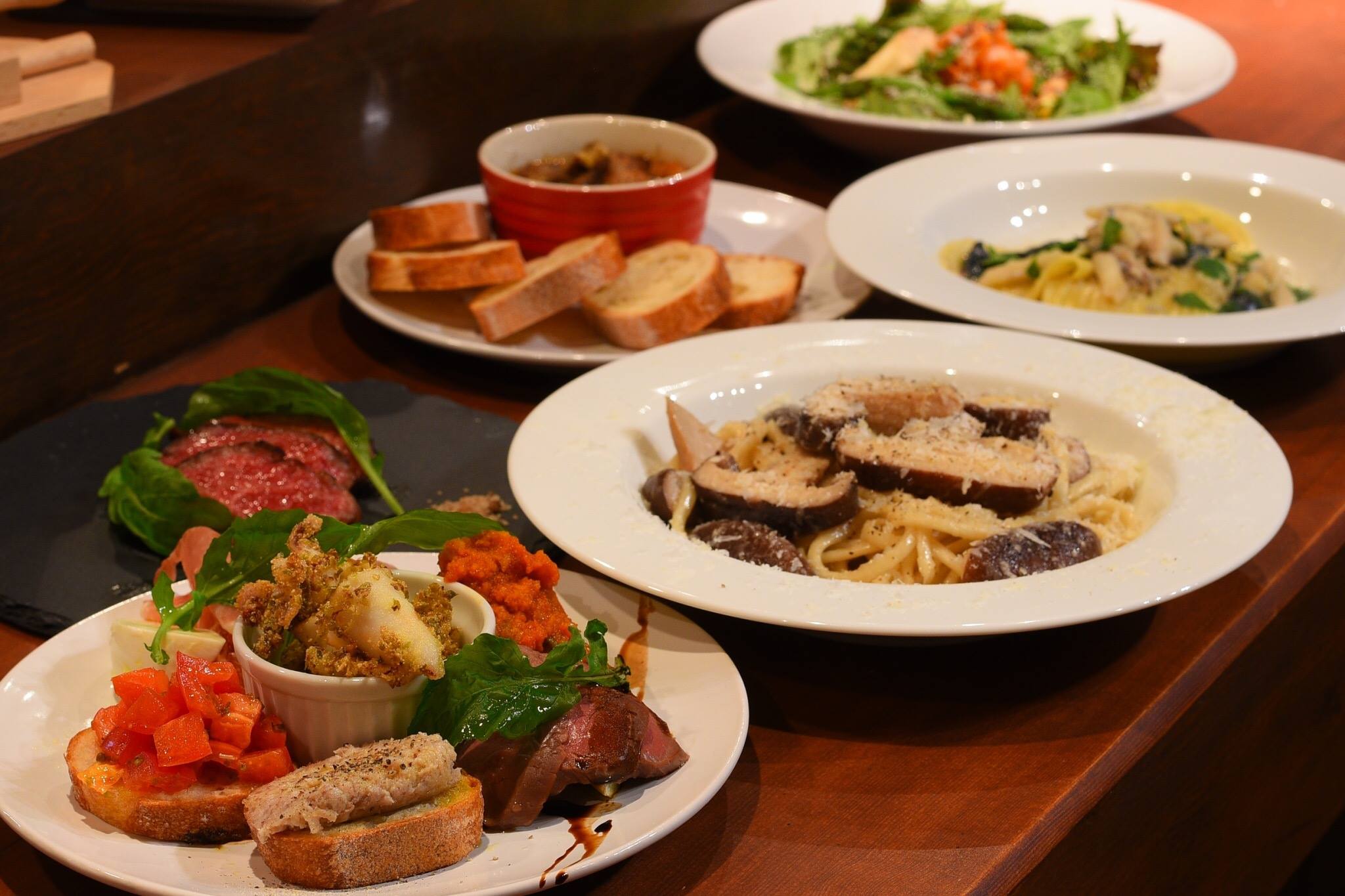 特にディナーでは、培われてきた創作イタリアンの腕を発揮して、お酒に合うアラカルトのプレートや、お食事をメインにしたコース料理にてお楽しみいただきます。